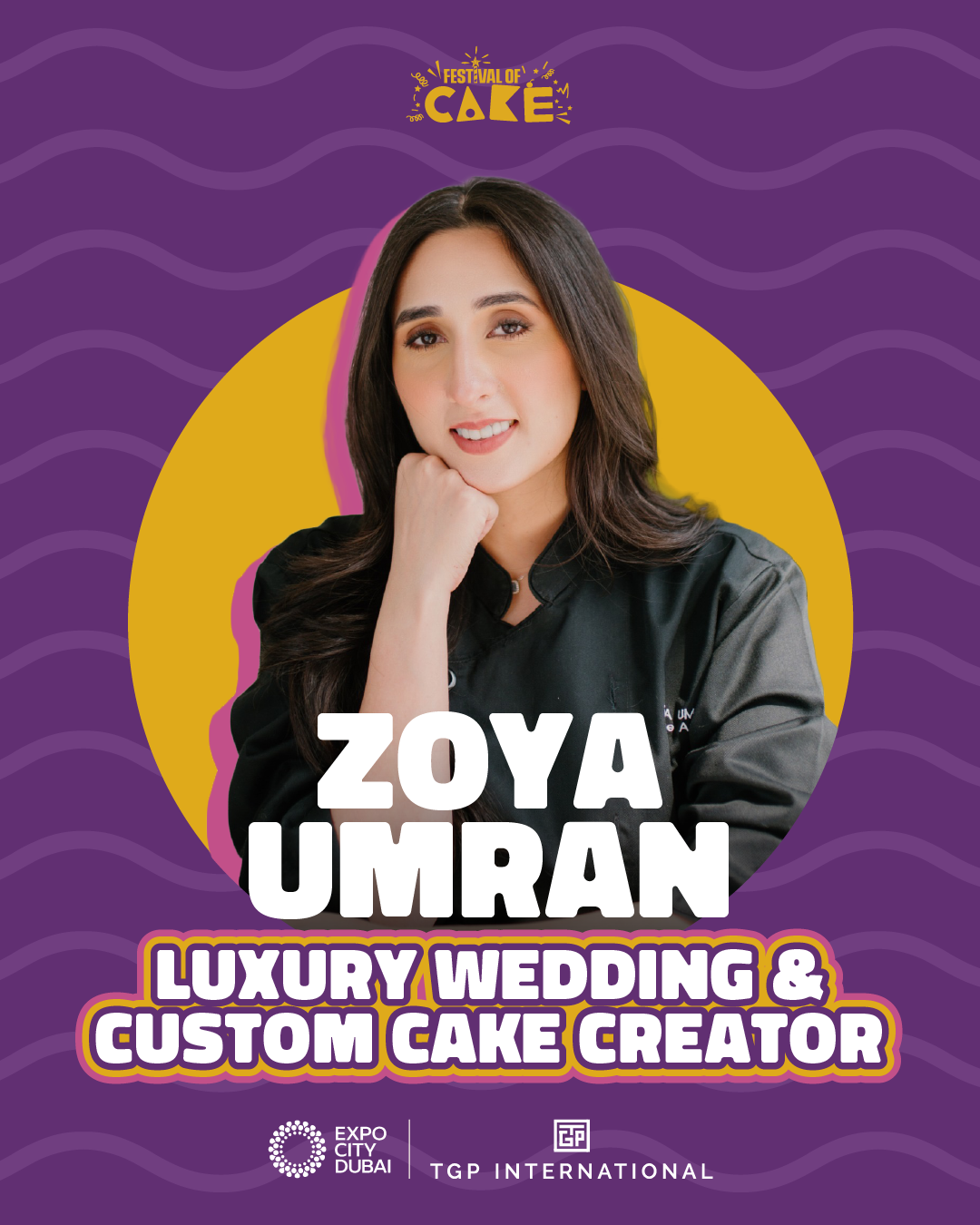 Zoya Umran, a self-taught cake artist with 13 years’ experience, founded Cakes by Zoya. She creates luxurious wedding and statement cakes that merge artistry and flavour, turning desserts into edible masterpieces that capture emotions, elevate celebrations, and craft timeless memories.